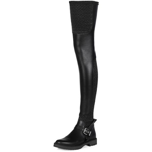 An edgy buckle strap girds the ankle of a soaring over-the-knee boot crafted in smooth calfskin and stretchy smocked tech fabric. Logo Jacquard-trimmed Leather Chelsea Boots - Black - IT395IT42. Fendi Rabbit Lined Motorcycle Boots.